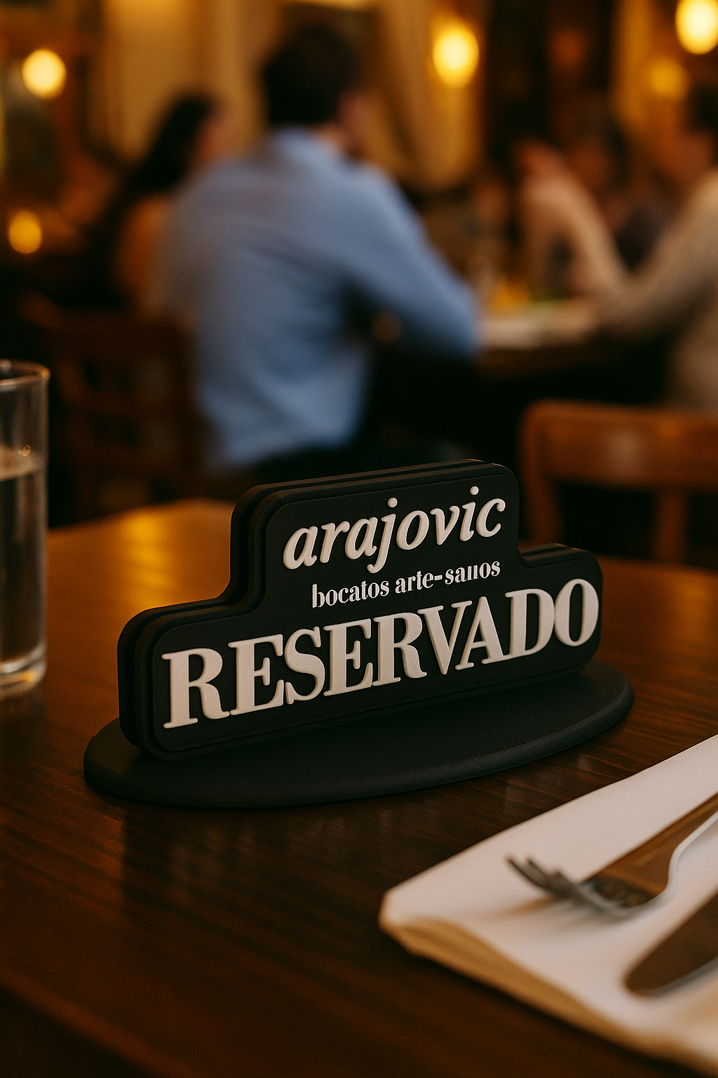 Más que un cartel de reservado: es un soporte de imagen para mesas con identidad. Con dos caras personalizables y espacio para incluir cartas o promociones, añade presencia sin recargar.